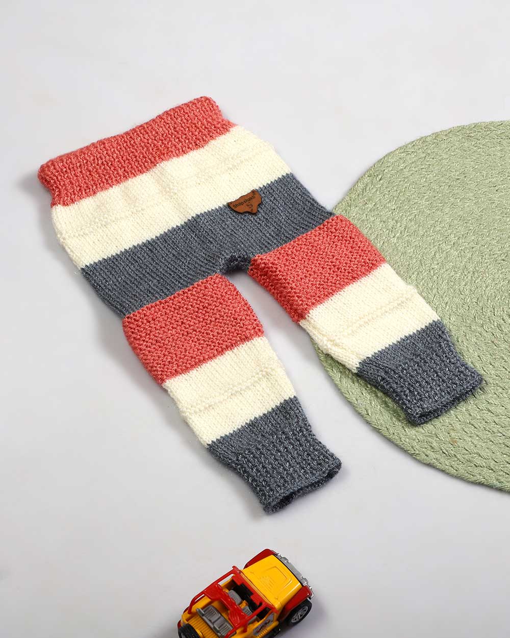 Hand Knit Woolen Multicolored Pant for Kids – Cream Grey Orange